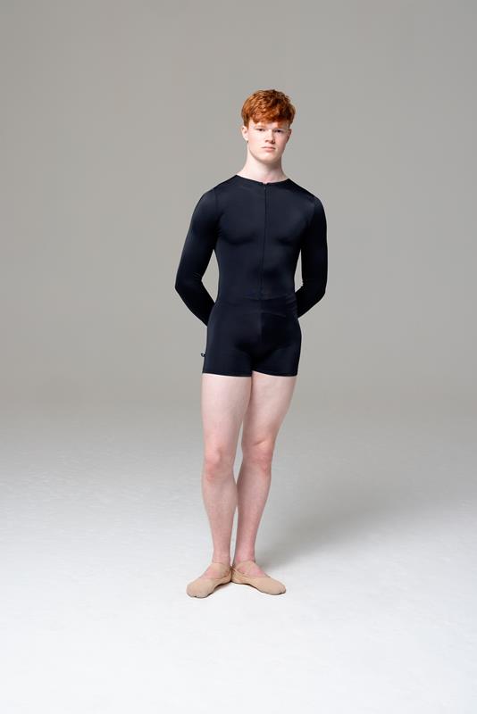 Short jumpsuit with long sleeves, with a sleek front zipper